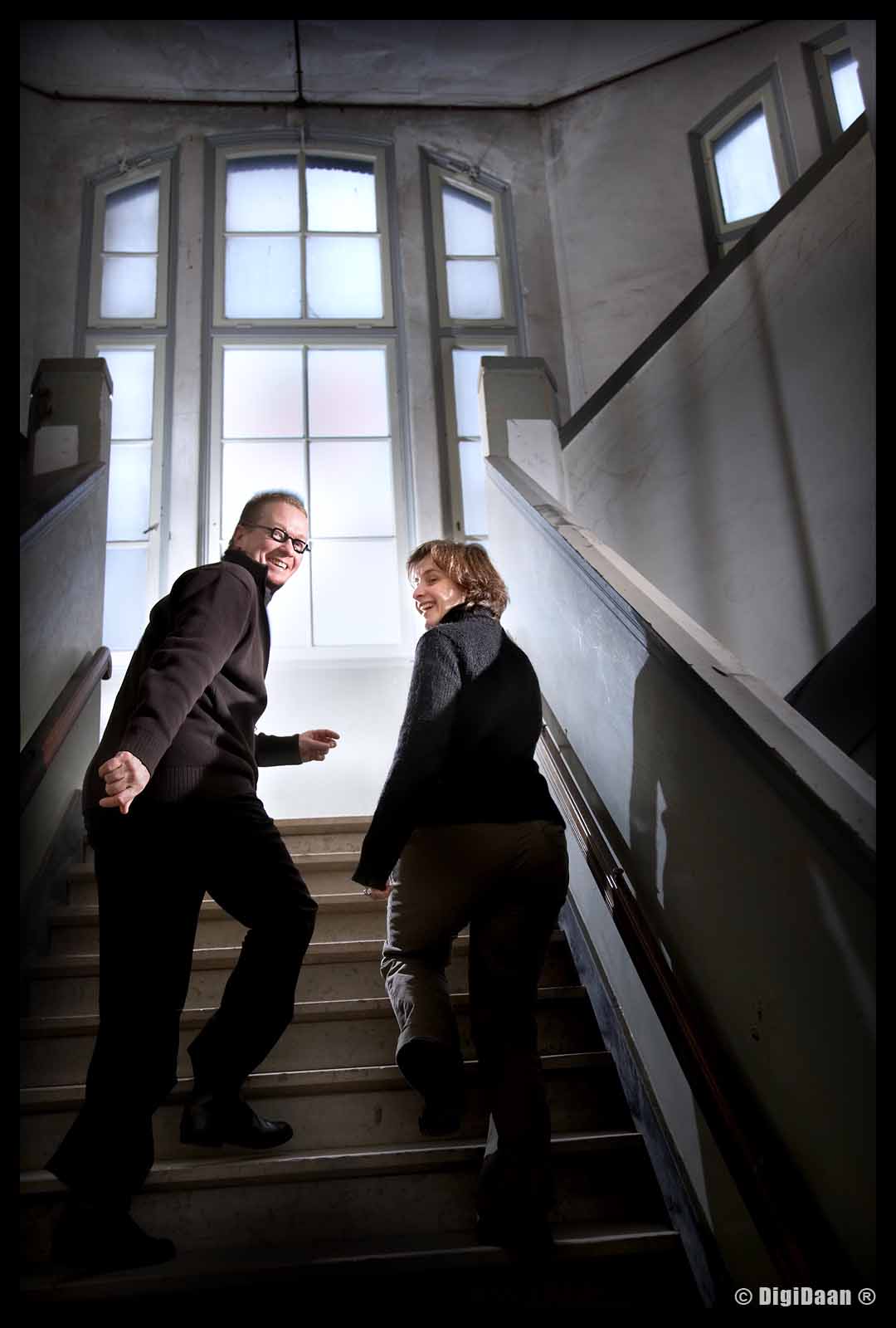Theater Adhoc: Het Mysterie van Majorana, voorpubliciteitsfoto; Jan van den Berg & Cora Schmeiser