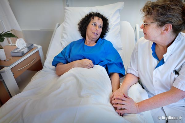 Antoni van Leeuwenhoek; Verpleegkundige aan bed bij patient